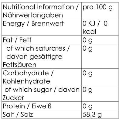 Zutaten: Sellerie Salz (Salz, Selleriesamen), Gewürze (Auch Paprika und Schwarzer Pfeffer), roter Pfeffer